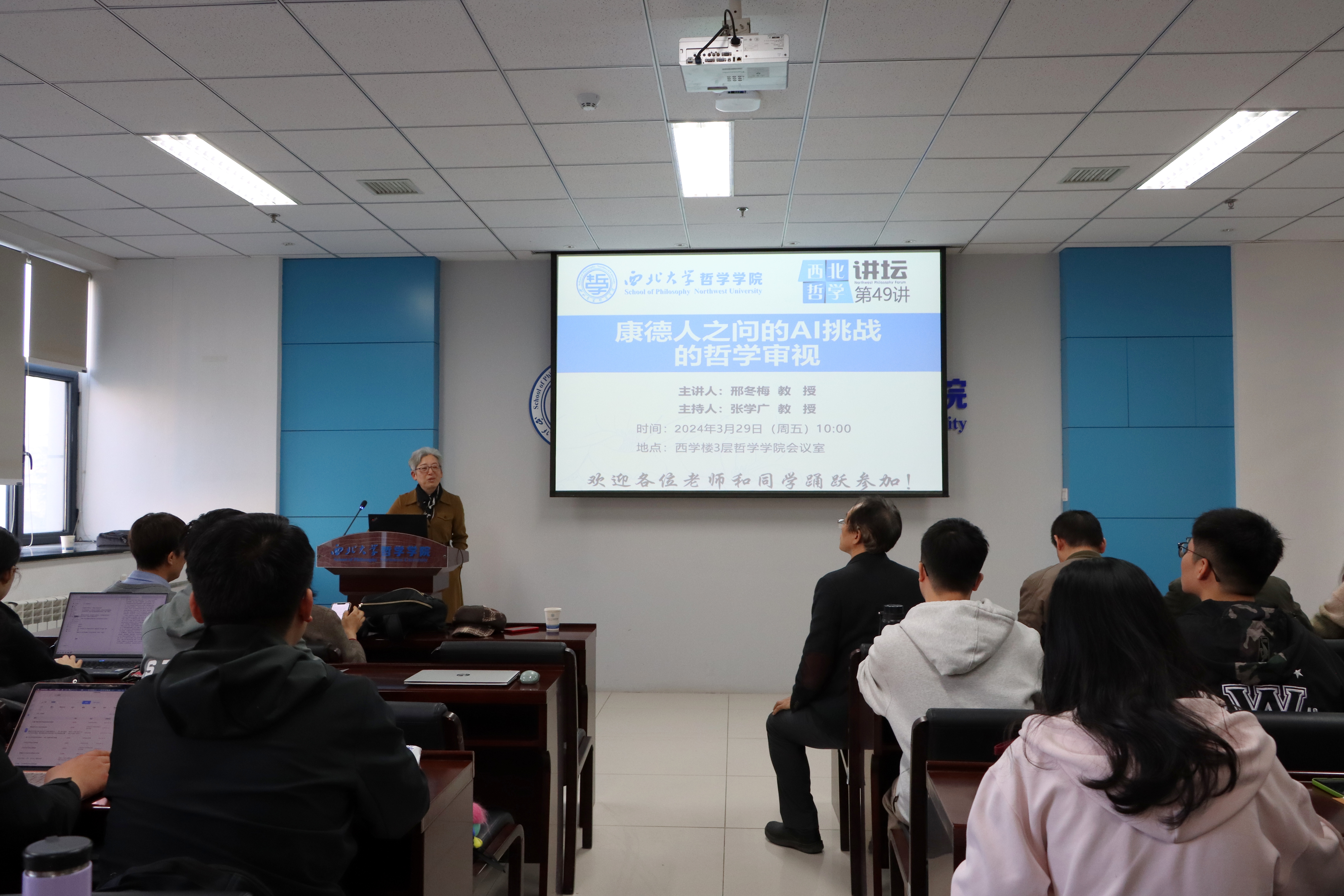 3月29日上午,苏州大学政治与公共管理学院哲学系教授、博士生导师邢冬梅做客“西北哲学讲坛”第49讲,在长安校区西学楼3层437必赢会员中心会议室作了题为“康德人之问的AI挑战的哲学审视”的专题讲座。本次讲座由张学广院长主持,院内外师生70余人参加。